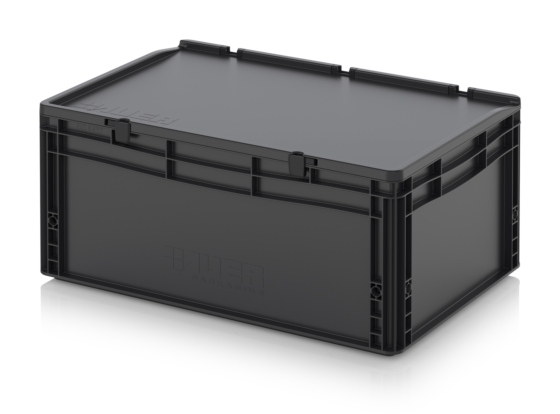 Евроконтейнер с ESD-защитой производства компании AUER Packaging изготавливается из антистатической пластмассы, что делает его пригодным, в частности, для надежного хранения и транспортировки электронной продукции.