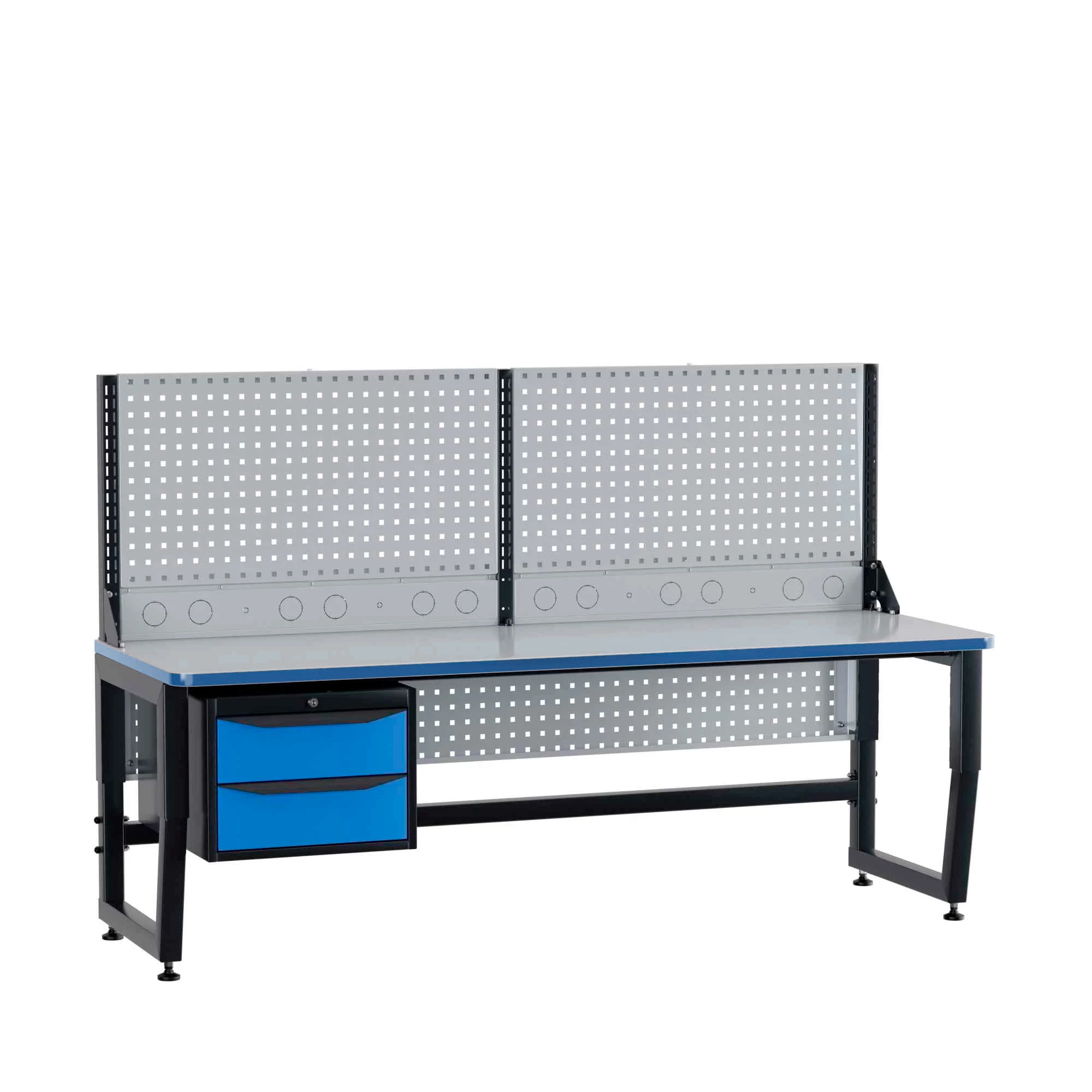 Столы могут быть укомплектованы подвесными тумбами с выдвижными ящиками. Внутренние размеры ящиков: большой ящик (ВхШхГ) — 127х400х508 мм, малый ящик — 52х400х508 мм, с максимальной нагрузкой до 30 кг при равномерном распределении. Также возможна установка экранов, блоков подключения коммуникаций, держателя системного блока и выдвижной полки для клавиатуры, что делает рабочее место максимально функциональным и удобным.