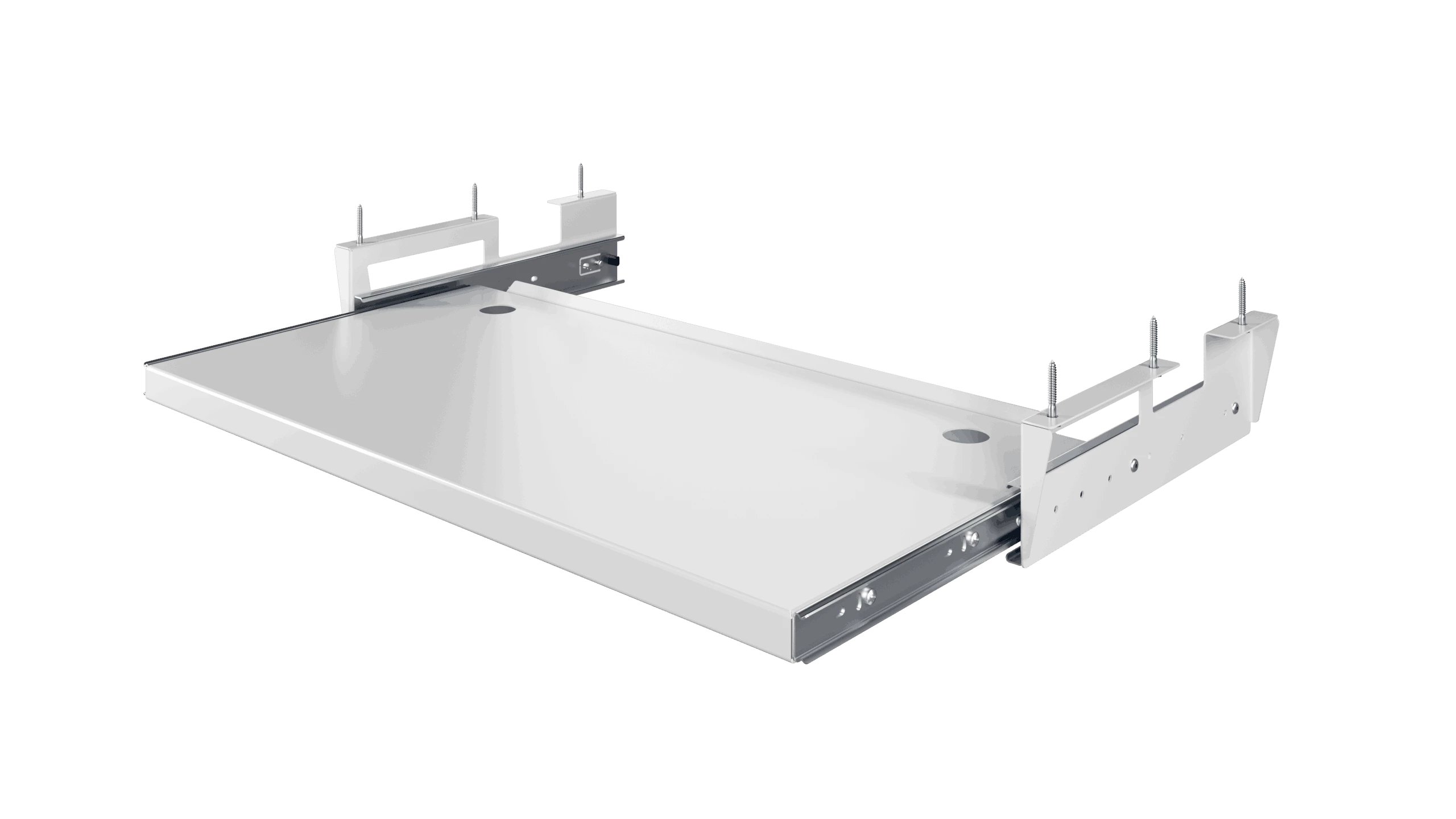 Антистатическая выдвижная полка для клавиатуры, фиксируемая под столом, представляет собой удобное решение для организации рабочего пространства. Она крепится под столешницей, обеспечивая легкий доступ к клавиатуре и освобождая место на рабочем столе. Полка оснащена выдвижным механизмом, который позволяет плавно перемещать клавиатуру в рабочее положение и обратно. Антистатическое покрытие защищает электронные устройства от накопления статического электричества, снижая риск повреждений.